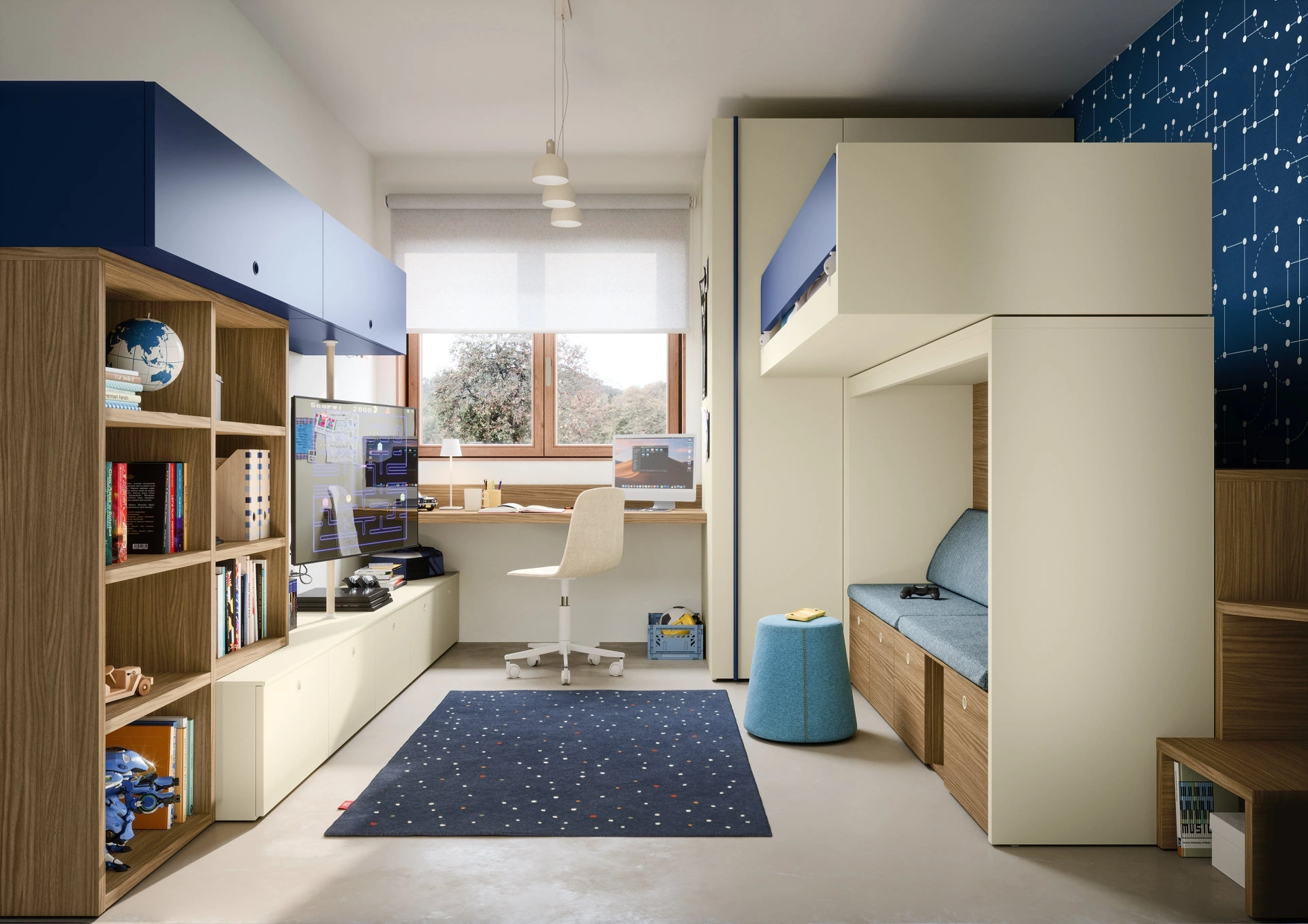 Con la Cameretta con letti a castello Skid di Nidi in melaminico ti assicurerai un perfetto mix di funzionalità ed ergonomia, ideale per la stanza dei tuoi figli. Le Camerette dei nostri figli sono l'ambiente in cui cresceranno divertendosi e sognando, quindi è essenziale che lo spazio sia ben organizzato. Proponiamo in negozio svariate Camerette con letti a castello moderne per bambini del marchio, ideali per accompagnarli durante il loro sviluppo. Nel nostro punto vendita ci occupiamo di seguirti dalla scelta dei mobili per la camera alla progettazione del luogo in cui i tuoi bimbi cresceranno, divertendosi e sognando.
