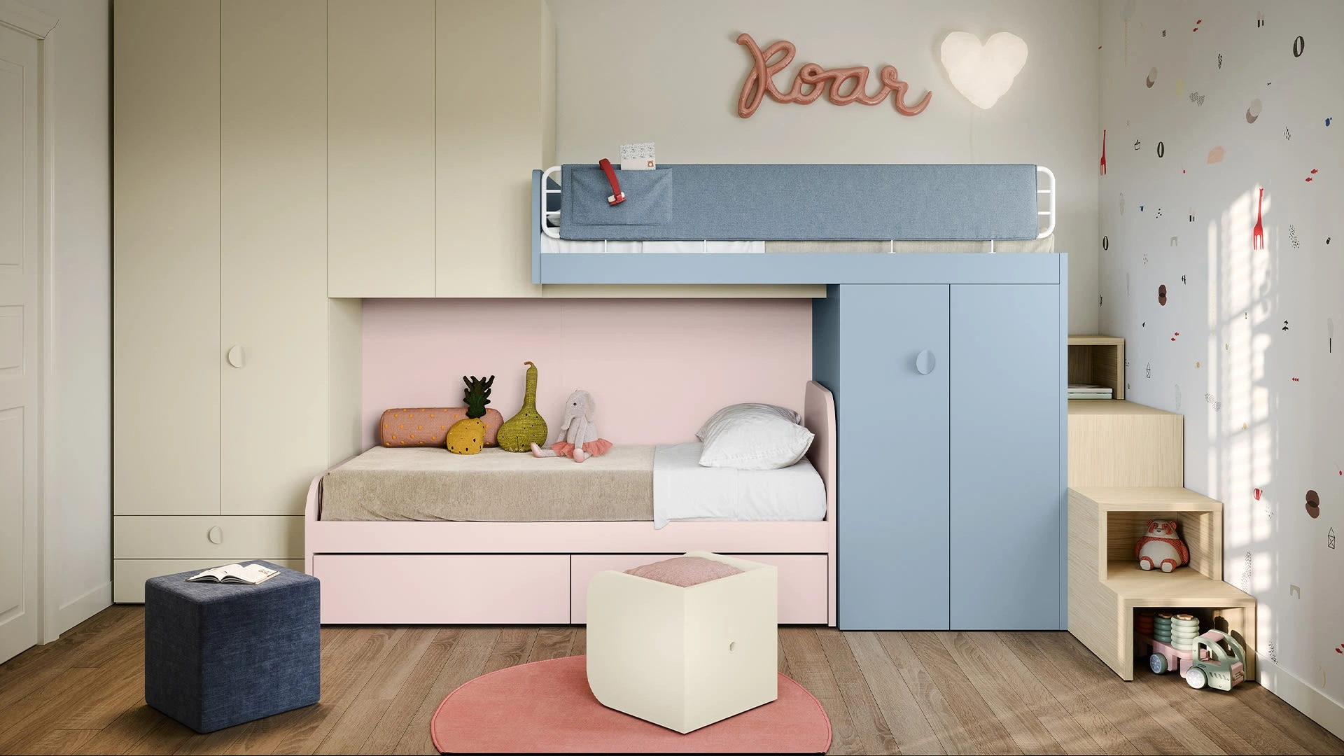 Le Camerette a soppalco per bambine del rinomato marchio sono disponibili in diverse versioni, che rispondono sempre alle necessità dei bimbi. Se la stanza ha dimensioni ridotte, sono disparate le soluzioni che Nidi propone, sempre capaci di unire funzionalità ed ergonomia. Gli accessori disponibili per le Camerette a soppalco di Nidi sono sempre adattabili, per scongiurare qualsiasi problematicità di spazio e funzionalità. Scopri in negozio la Cameretta con letti a soppalco di Nidi in melaminico: è la soluzione per ricreare al meglio un ambiente accogliente, bello e ben organizzato.