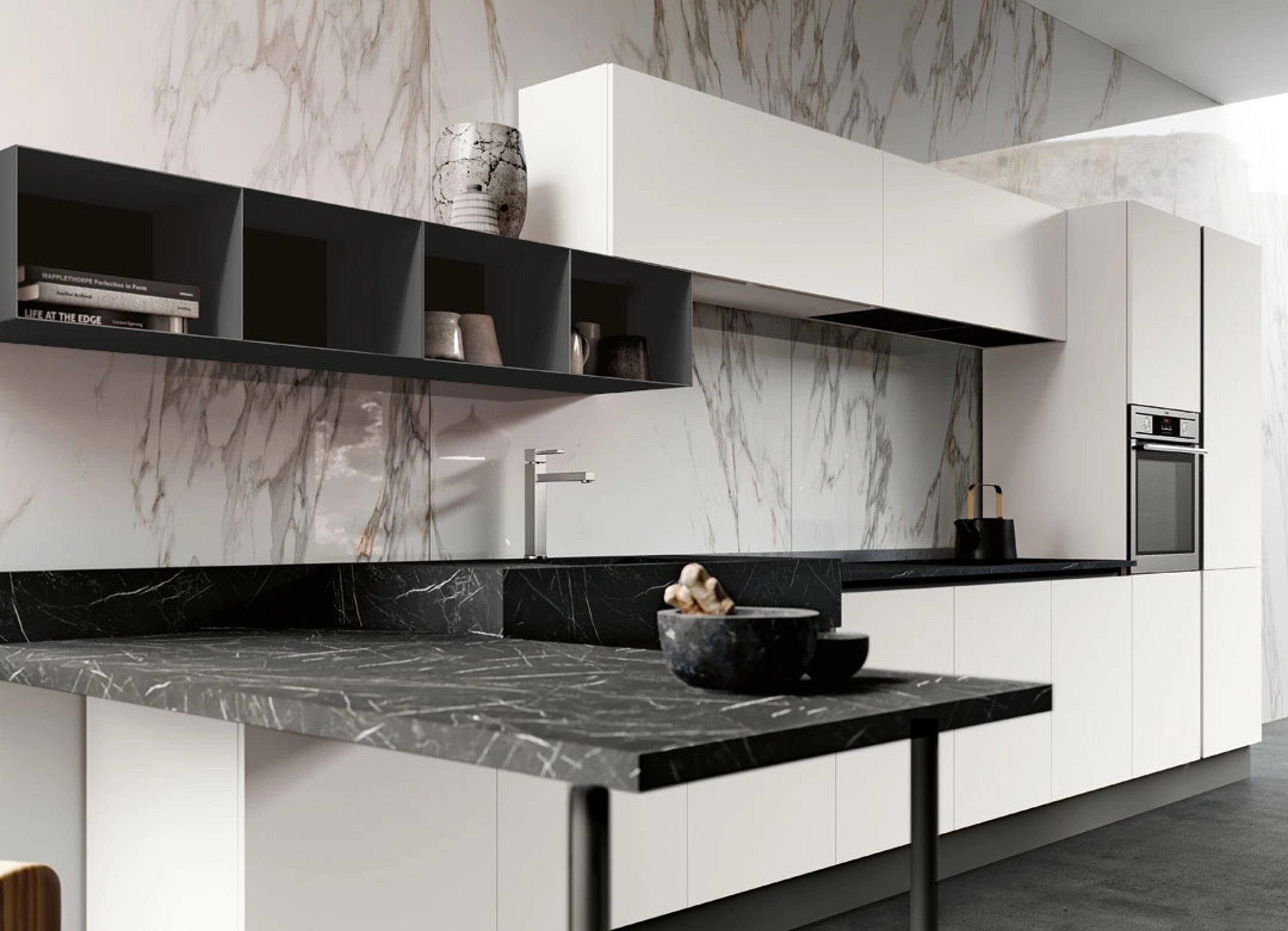 Realizza con noi un progetto su misura: per vivere in pieno agio la tua abitazione, i nostri arredatori sono pronti a guidarti con professionalità nella selezione. Se vuoi acquistare una soluzione in melaminico tra le differenti proposte con penisola, componibilità su misura della Cucina Moderna con penisola Panarea di Imab ti darà modo di esprimere le tue necessità d’arredo. Tra i differenti modelli presenti nel catalogo Imab, la cucina nella fotografia rende lo spazio totalmente fruibile e danno la possibilità di vivere gli ambienti domestici appieno.